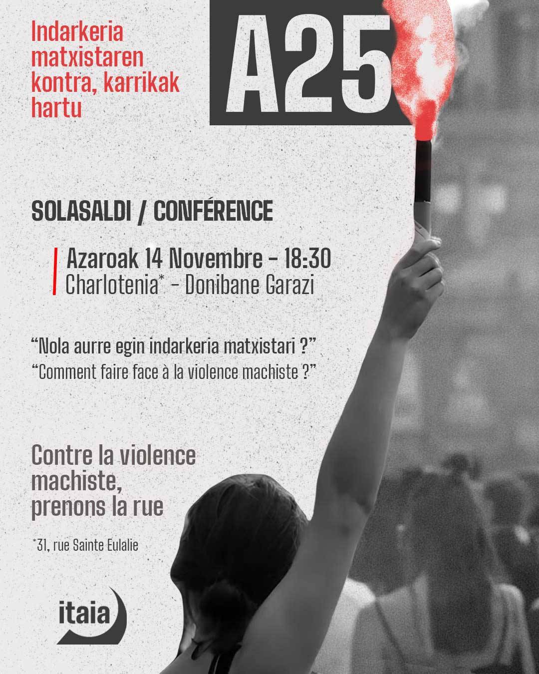 Itaia appelle à se mobiliser le 25 novembre, Journée internationale pour l'élimination de la violence à l'égard des femmes.