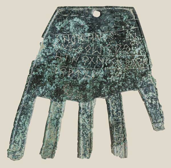 Sur la Main d'Irulegi, amulette en bronze datant du 1er siècle avant J.C, trouvé lors de fouilles en 2021, est gravé le plus vieux témoignage écrit de ce qui serait l'origine de la langue basque.